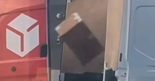 На видеозаписи доставщик, облачённый в защитную жилетку, наблюдает за тем, как его невидимый коллега перебрасывает заказы из одного автомобиля в другой. Воспринимая это как некую игру, работник даже ухмыляется, когда его друг ускоряет темп.