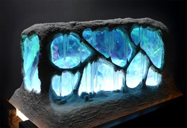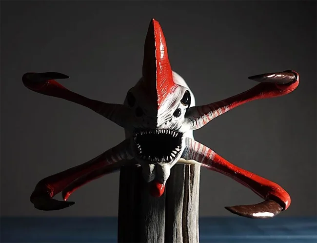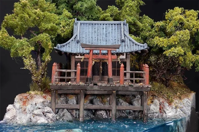 Недавно он получил множество положительных откликов за искусную диораму, которая изображает таинственный храм на скалистом побережье и китоподобное существо, поднимающееся из недр океана.