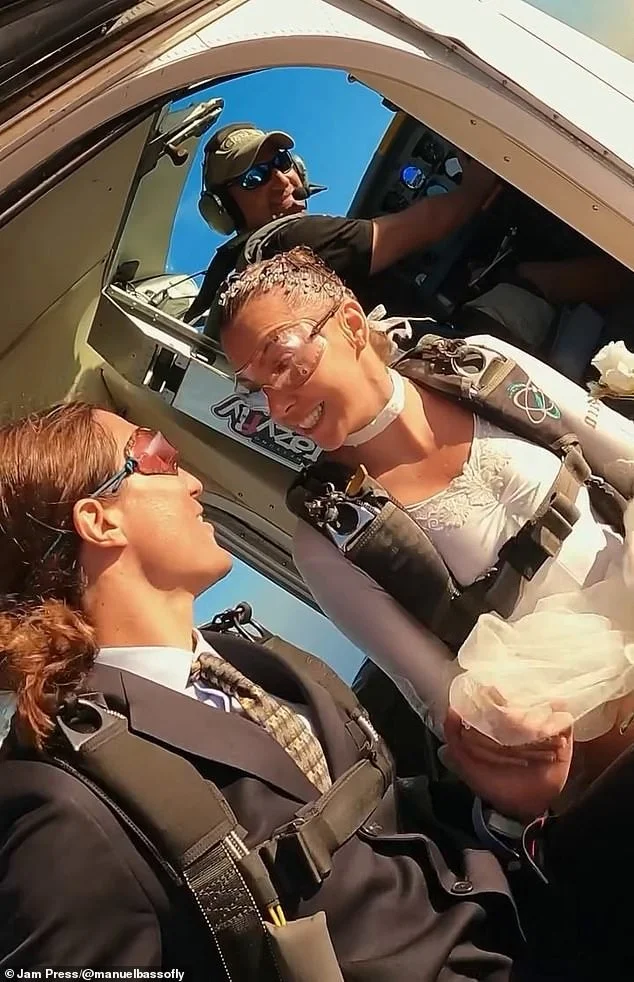 44-летняя Роберта, которую прозвали "самой сексуальной парашютисткой в мире", сочеталась браком в небе со своим избранником, 38-летним Мануэлем Бассо.