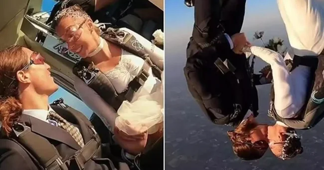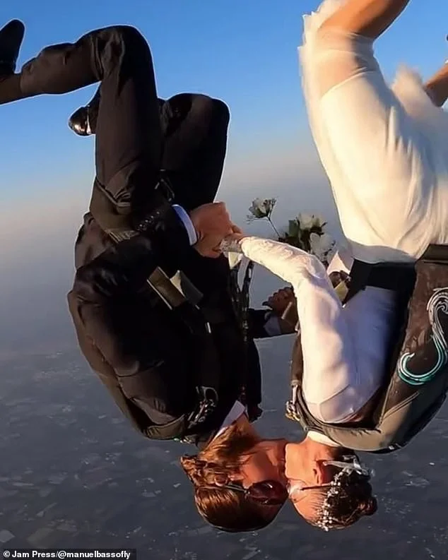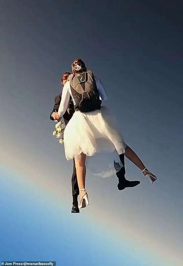 Для многих пар идея вступления в брак может показаться пугающим прыжком в неизвестность. Но смелая Роберта Манчино и Мануэль Бассо именно так и отпраздновали свою свадьбу - вместе прыгнули с парашютом.