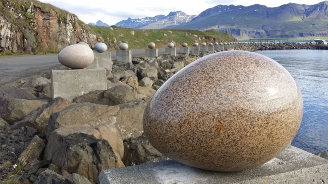 Эти увеличенные скульптуры яиц символизируют пернатых жителей восточной Исландии.