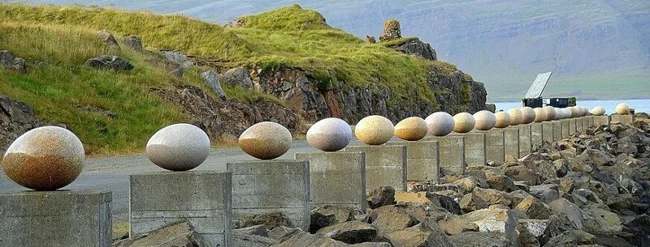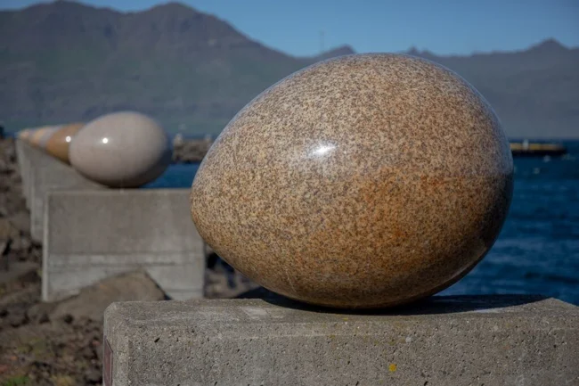 Eggin í Gleðivík – «Яйца Весёлой бухты» - произведение искусства, созданное известным исландским художником Сигурдуром Гудмундссоном (р. 1942).
