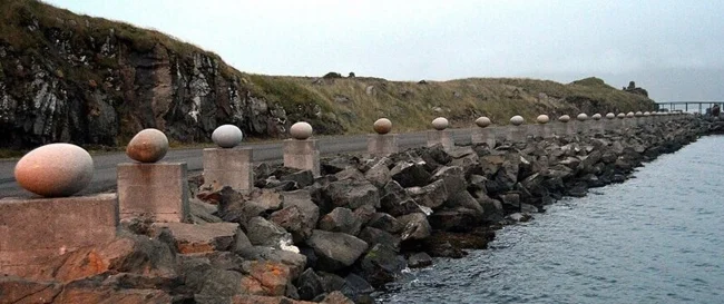 Глава Дьюпивогюра размышлял о том, что можно сделать со старыми столбами, и обратился к художнику Сигурдуру Гудмундссону. Сигурдуру сразу же пришла в голову идея гранитных яиц, и он мастерски воплотил её в жизнь. На торжественном открытии своего произведения он сказал, что никогда не создавал такого большого объекта искусства за столь короткое время. Общая длина композиции составляет 200 метров.