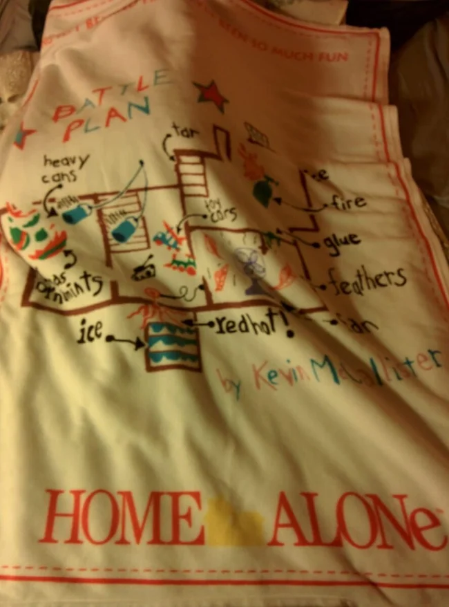 На нём расписан план Кевина Маккаллистера по борьбе с ворами из фильма «Один дома».