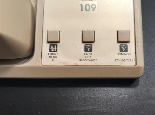 На телефоне в номере моего отеля есть три быстрых вызова, два из которых — это пиццерии