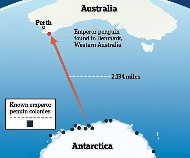 Эксперты считают, что императорский пингвин прибыл в Австралию из Антарктиды, которая находится на расстоянии 3400 километров.