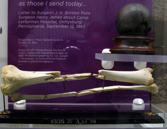 Один из самых популярных экспонатов вашингтонского Национального музея здоровья и медицины - осколки кости ноги американского генерала периода Гражданской войны. Экспонат очень популярен, и сам бывший хозяин ноги неоднократно посещал его как для того, чтобы пострадать над потерей, так и для того, чтобы произвести впечатление на приводимых с собой гостей.