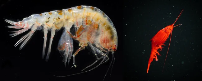 Компанию медузам составляют креветкоподобные ракообразные, вроде ампелисков и мизид. Они радикально увеличили размеры своих жабр, сделали их более тонкими и очень проницаемыми для кислорода. Эти членистоногие собирают урожай с бактериальных полей и доедают упавшую сверху органику.