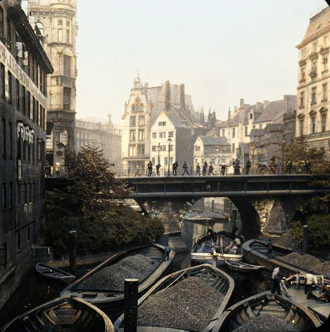 Баржи на канале в Гамбурге, 1906 год. ![]()