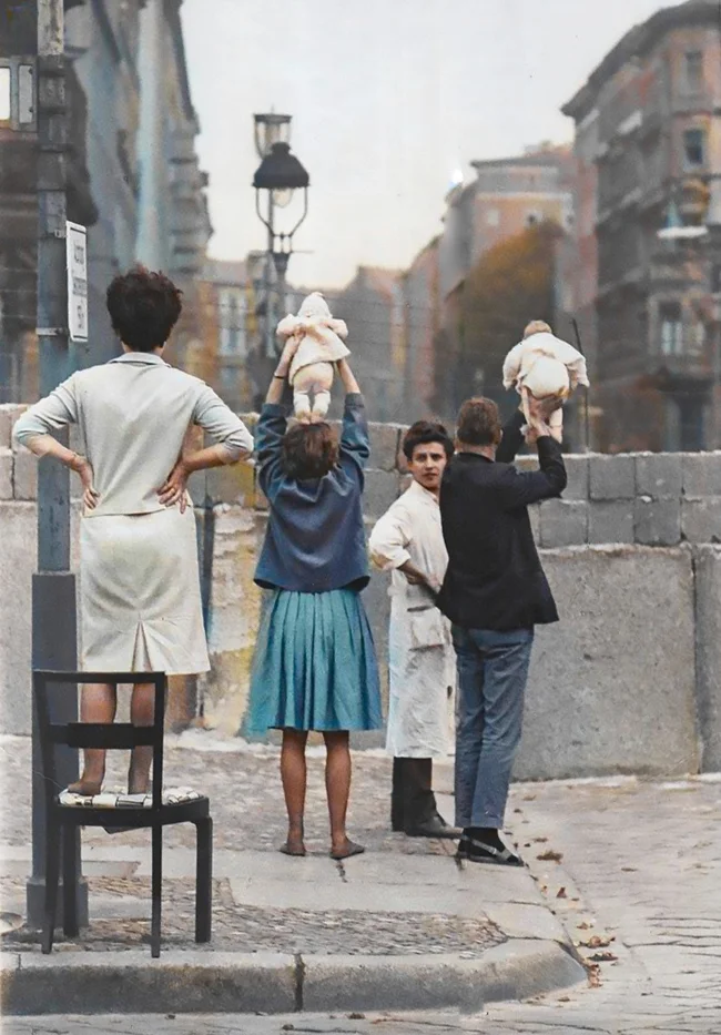 Жители Западного Берлина показывают своих детей бабушкам и дедушкам, живущим в Восточном Берлине, 1961 год.