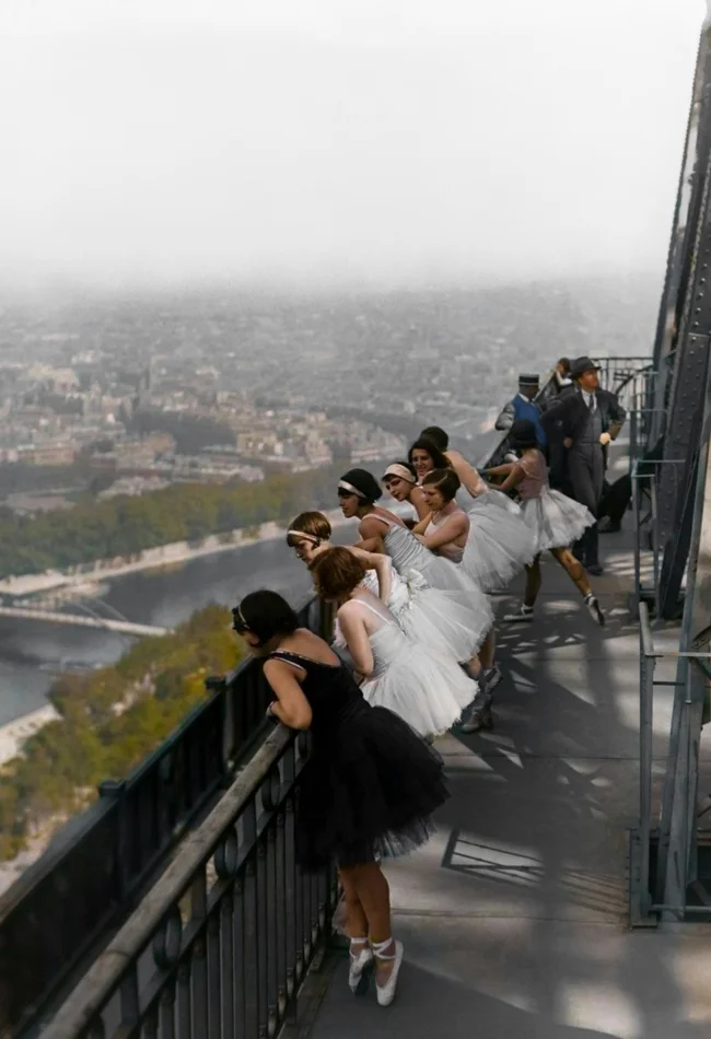 Балерины Мулен Руж на смотровой площадке Эйфелевой башни, 1929 год.