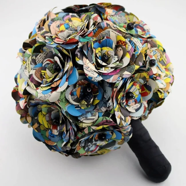 Жена сделала свадебный букет из комиксовых страничек