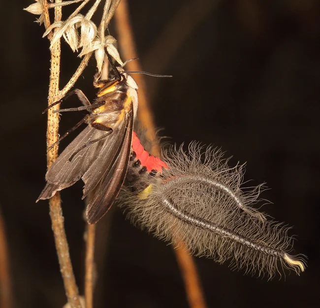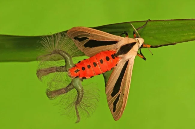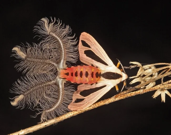 В том, что шерстяные щупальца складные! А ещё в том, что без них моли, возможно, не дожили бы до наших дней. Потому что отростки на брюшке служат не для запугивания и не для красоты: они несут исключительно практическую любовную функцию.