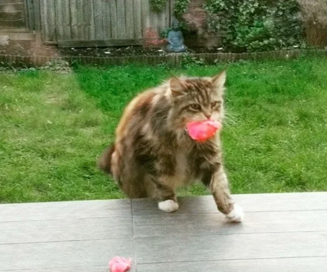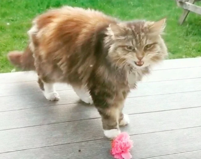 Что касается цветов — это выглядит будто своеобразная «плата» за проживание и еду. Если бы не увидела собственными глазами, Роуз бы не поверила, что кошка на такое способна.