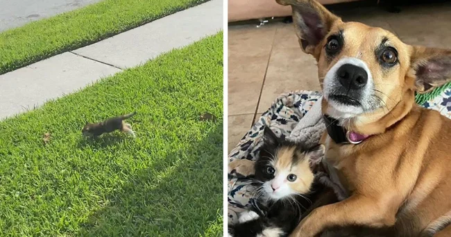Очаровательный дуэт: собака спасла бездомного котёнка (16 фото)
