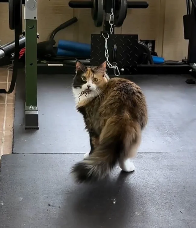 А кошка тем временем переняла собачьи повадки.