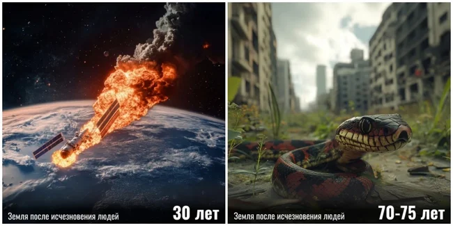 На Землю начнут падать спутники и МКС. К счастью, к этому времени животных будет уже столько, что небольшое вымирание ни к чему не приведёт. Змеи невероятно расплодятся и станут гораздо крупнее в размерах из-за большого количества крыс.