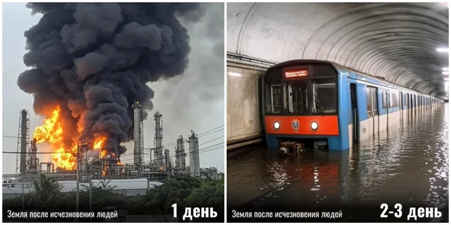 Сразу после исчезновения человека из-за отсутствия операторов начнутся пожары на нефтеперерабатывающих заводах, а насосы перестанут откачивать воду из метро.