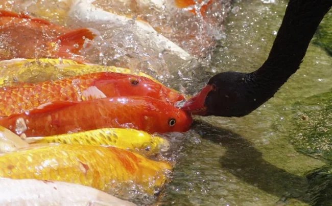 5. Рыбки выстроились в очередь на «поцелуйчики» к лебедю