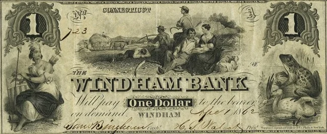 Банкнота номиналом 1 доллар, выпущенная в 1862 году банком Уиндхэма