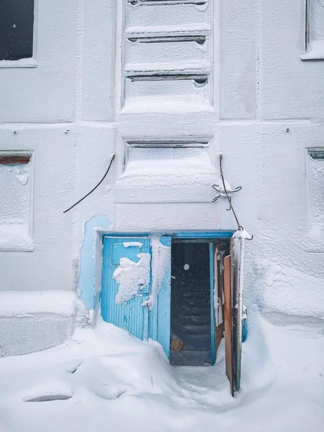 6. Замерзшие лестницы заброшенного советского города-призрака, Пирамида, расположенного за Полярным кругом на острове Шпицберген