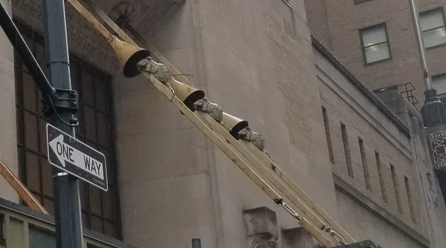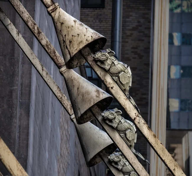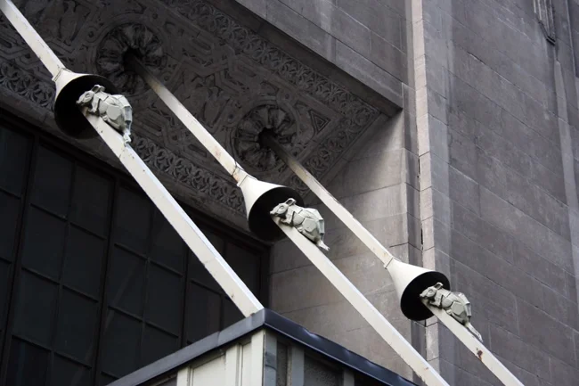 И как в случае с настоящими швартовыми линиями, по ним старательно карабкаются крысы, быстро перебирая лапками и отчаянно пытаясь попасть на «корабль», которым является Graybar Building. Грызунам мешают конические конструкции, расположенные в верхней части линий. Они не дают скульптурным паразитам добраться до самого здания, как они не дают крысам попасть на корабль.