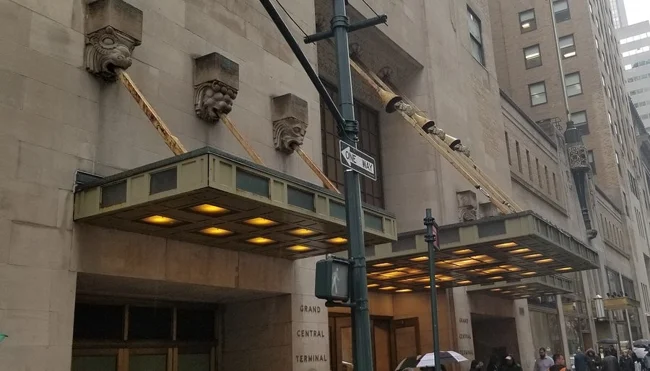 Здание Graybar Building, возведённое в 1927 году, было спроектировано, чтобы отдать дань уважения положению Нью-Йорка как ключевого транспортного узла с его поездами и морским портом. Тросы, соединяющие навес перед фасадом с самим зданием, сделаны так, что напоминают швартовые линии корабля.