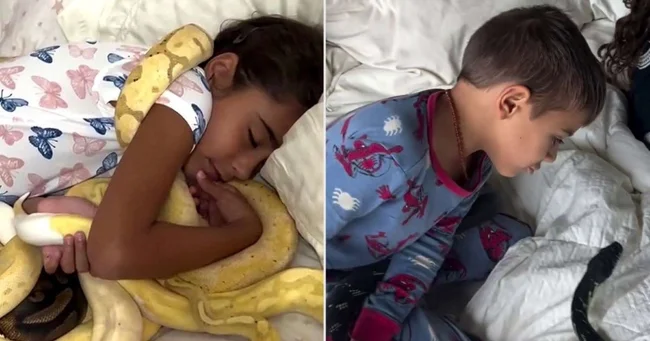 Гордый отец назвал дочь и сына Максимуса, 5 лет, опытными змееводами. Ариана держит в своей спальне 30 чешуйчатых питомцев.