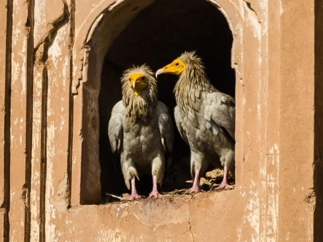 Белый, или египетский стервятник, фараонова курица — очень своеобразная птичка с лысой жёлтой головой и ярко-белым оперением. Несмотря на противные привычки, египтяне почитали их как священных птиц богинь Изиды и Мут. За убийство пернатого было суровое наказание — лысики имели протекцию от самого фараона.