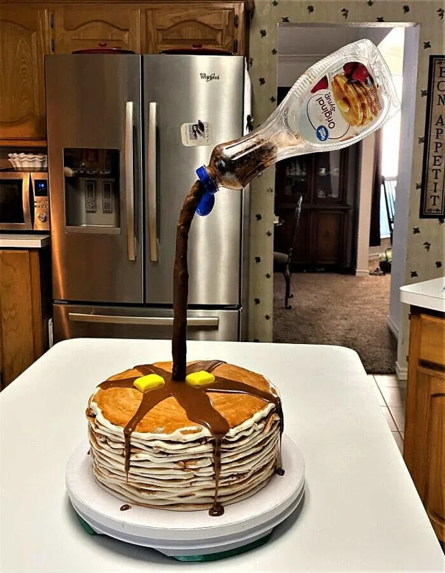 11. В этом "блинном" торте всё съедобно, даже бутылочка с сиропом
