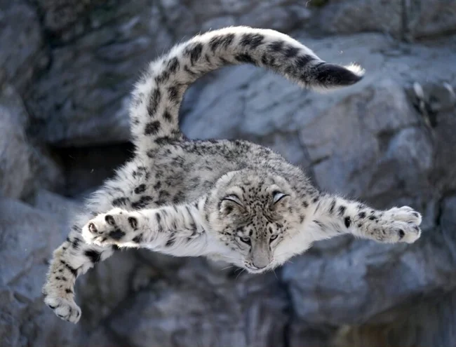 Снежные барсы могут за один прыжок преодолевать расстояние до 15 метров. На пути этого красавца лучше не попадаться.