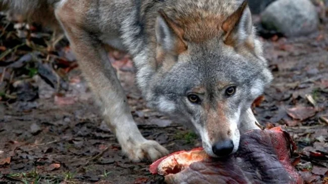 Волк может съесть до 9 килограммов мяса за один присест.
