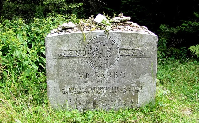 Печаль этого происшествия осталась высеченной в граните под портретом Мистера Барбо: «Мы любили его, и он отплатил за эту любовь преданностью, которую может дать только собака. Застрелен злонамеренным охотником 24 ноября 1955 года».