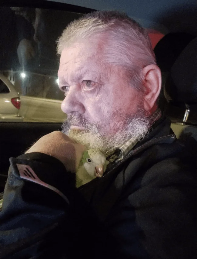 29. "Мой папа успокаивает своего 25-летнего попугая во время пожарной тревоги"