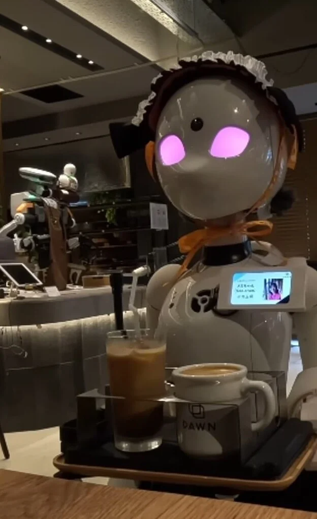 В Dawn Avatar Robot он познакомился с официанткой, которая дружелюбно побеседовала с ним через белого робота с розовыми светящимися глазами. Помощник принёс поднос с напитками к его столику.