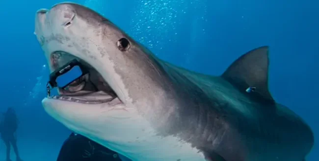 Происшествие произошло во время кормления акулы, а телефон был запечатан в водонепроницаемый чехол. На видео четко видно, как выглядит организм и челюсть акулы с внутренней стороны.