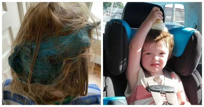 22. Игрушка лизун запуталась и лопнула в волосах у дочери ![]()