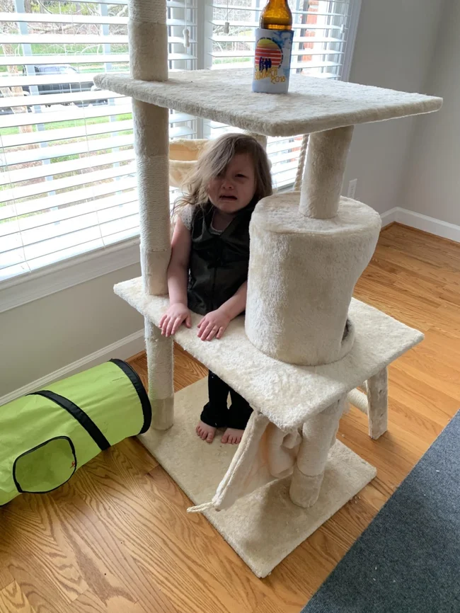 13. Дочь друзей застряла в кошачьем домике, когда они пришли к нам в гости