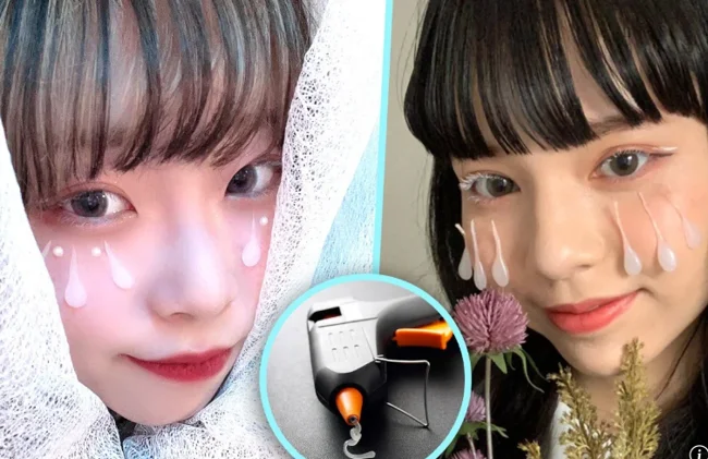 Новый модный тренд в Японии (и еще немного Китай повторяет за ними) заключается в том, что девушки делают себе искусственные слезы в форме капель из застывающего термоклея.