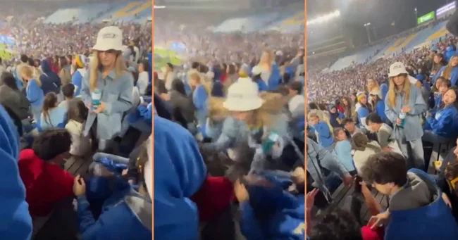 Фанатка футбольного клуба UCLA жестоко ударила незнакомца в разгар игры (2 фото + 1 видео)