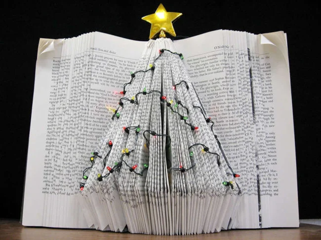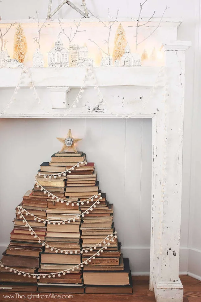 8. Старые потрепанные книги идеально складываются в сказочно-винтажную елку