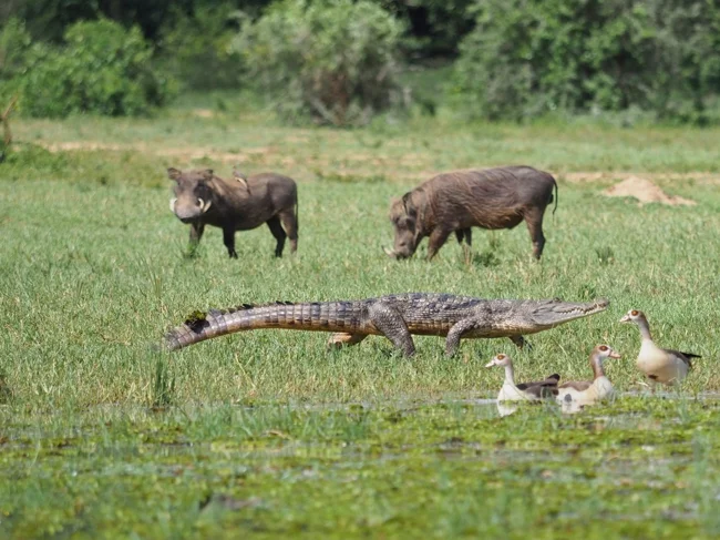 Иногда крокодилы охотятся и на бегемотов. Но, как правило, животные стараются игнорировать друг друга.