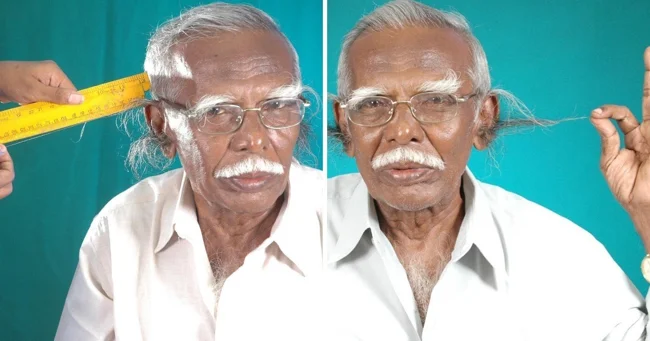 У индийца Энтони Виктора из ушей растут волосы, длина которых достигает 18,1 сантиметров