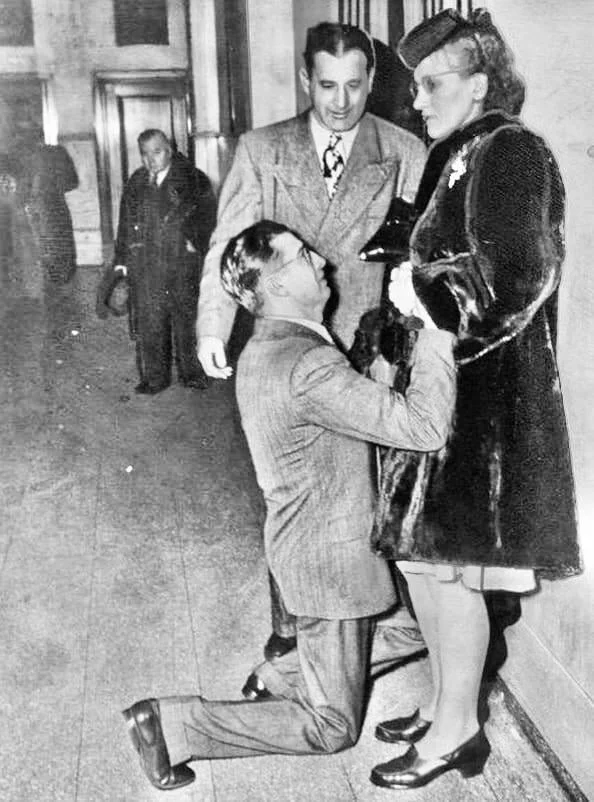 2. Мужчина просит прощения у своей жены в суде по бракоразводным процессам, Чикаго,1948 год