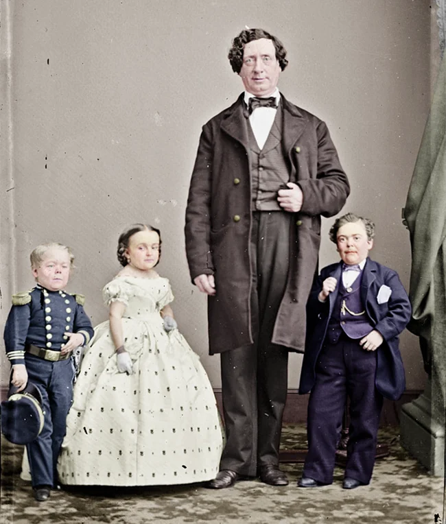 10. Хозяин цирка Барнум и трое его гномов, генерал Пальчик, Лавиния Уоррен и коммодор Натт, 1800 год