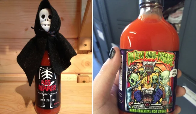 В магазинах полно острых соусов самых разных марок и вкусов. Конкуренция заоблачно высока, и производители как только не изгаляются над упаковкой продукта, чтобы он выделялся на магазинных полках среди остальных. Зачастую результаты получаются скорее отталкивающими, чем по-настоящему смешными, хотя есть и удачные исключения.