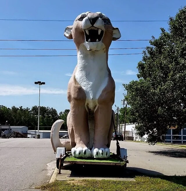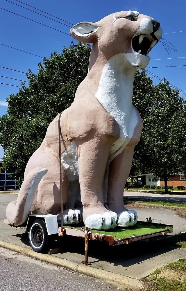 Пума была изготовлена компанией, которая ранее создавала гигантов для Disney. Были изготовлены две одинаковые кошки: одна отправилась в Северную Каролину, а другая - в Вашингтон. Они стали частью рекламного трюка для компании Ford, которая рекламировала серию Mercury Cougar. Пумы высотой с двухэтажный дом стояли на крышах дилерских центров Lincoln-Mercury, зазывая покупателей призывным рычанием.