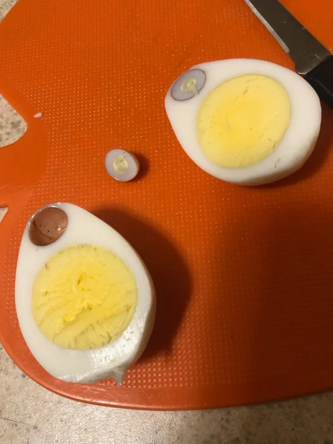 9. "Моя сестра нашла это крошечное яйцо внутри варёного яйца"