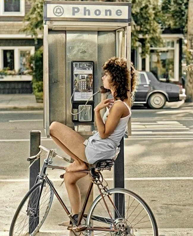 Дама и телефон-автомат. 1980-е годы. Бронкс, Нью-Йорк.