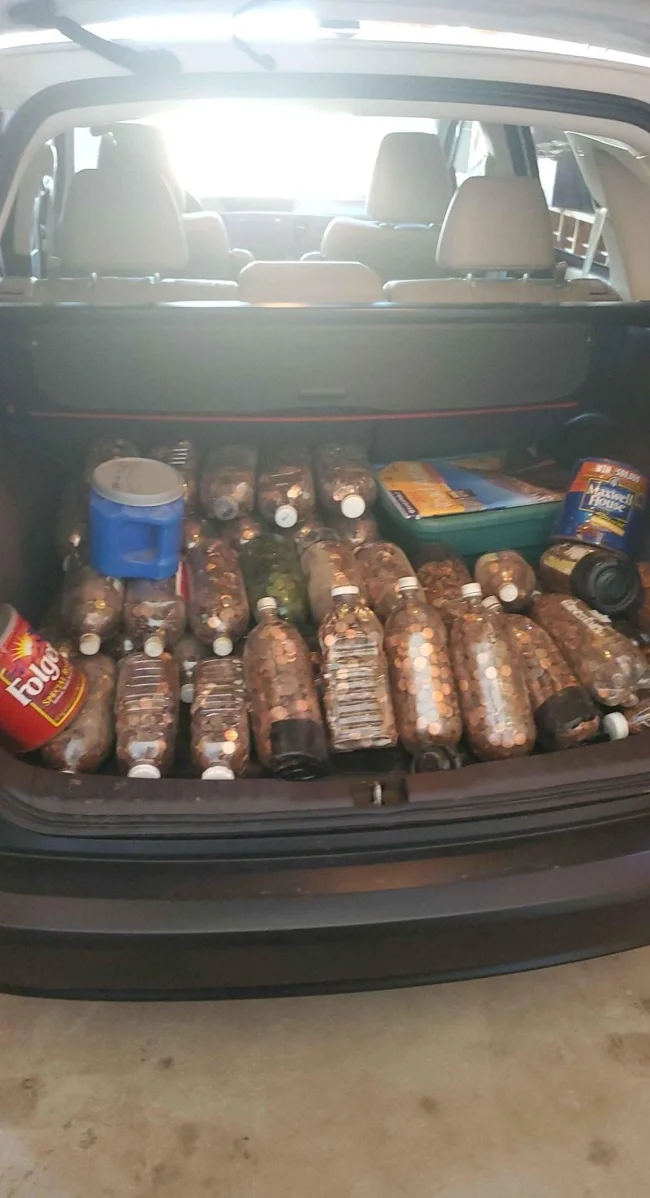 Дэйв решил обратиться за советом к участникам форума Reddit. Он опубликовал фотографию багажника своей машины, заполненного бутылками с пенни, и задал вопрос: стоит ли сортировать монеты, особенно те, которые были выпущены до 1982 года и содержат чистую медь.